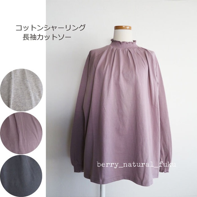 ■1枚のみネコポス便発送可能■ ・ネコポス便についての注意事項をご確認ください。 ■商品詳細■ コットン素材を使用したシャーリングデザインの長袖ラグランカットソーです。 衿と袖口にはゴムが施されており、フィット感のある快適な着心地を実現しています。 身幅はワイドで、リラックス感のあるゆったりとしたシルエットが特徴的です。 プチプラなところも嬉しい♪インナー用にも活躍してくれます。 毎年人気のシャーリングカットソーです。 ■サイズ■ M~L(バスト79~94・身長154~162) 約 着丈63 身幅65 ゆき丈76 裾幅65 ■カラー■ 杢ベージュ#82 スモークピンク#73 ブラック#99 ■素材■ 綿 100% made in china ・PC環境により、画像と実物は色合いなどが異なることがありますのでご了承下さい。 ・洗濯・アイロンの使用法は品質表示マークに従ってください。 ■在庫について■ こちらの商品は実店舗での併用販売となっております。 在庫は随時更新をしていますがお買い上げいただいた商品が品切れになっている場合がございます。 その場合ご注文確認後に連絡をさせていただきますのでご了承くださいませ。