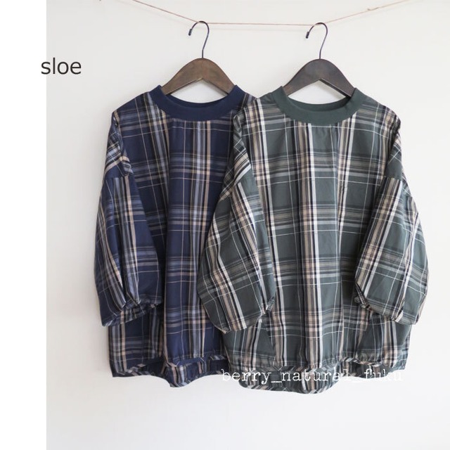 SALE sloe スロウ 先染めチェック 衿リブ 7分袖 バルーンスリーブ プルオーバー ブラウス 綿 4406011 通販 8029