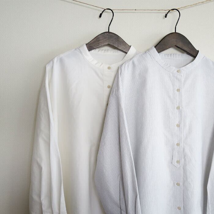 blue willow ブルーウィロー コットン オックス ブラウスチュニック 無地 ストライプ バンドカラー 01ESP12023 通販 7684
