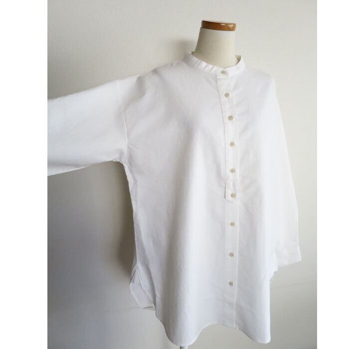 blue willowコットンオックス素材を使用したバンドカラーブラウスチュニックです。