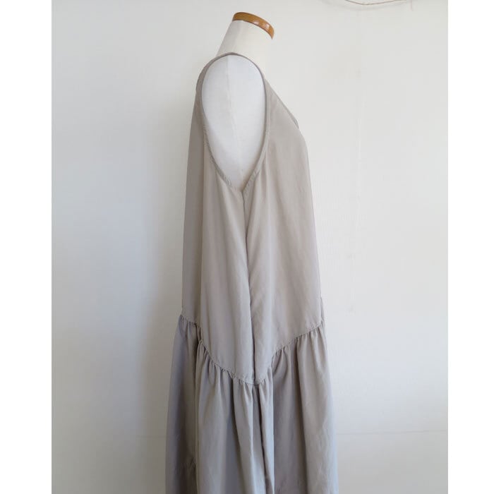 切替ギャザータイプのロング丈ジャンパースカートです。