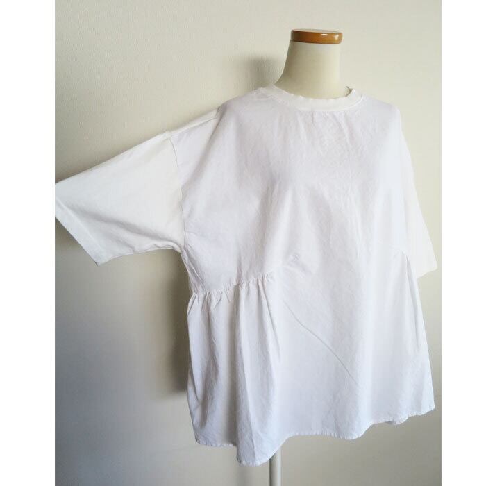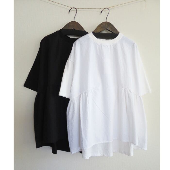 CUORE STORE クオーレストアー 布帛+カットソー 切替ギャザー プルオーバー 綿100% Tシャツ カットソー ブラウス 5538073 通販 7886
