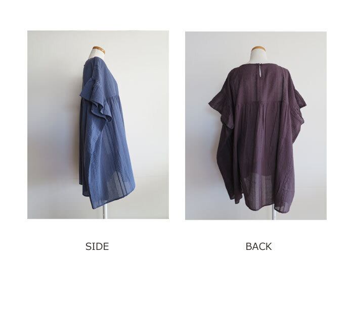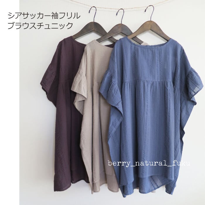 SALE ランダム シアサッカー 袖フレア ブラウス インド綿 チュニック プチプラ B2506561 通販 7919