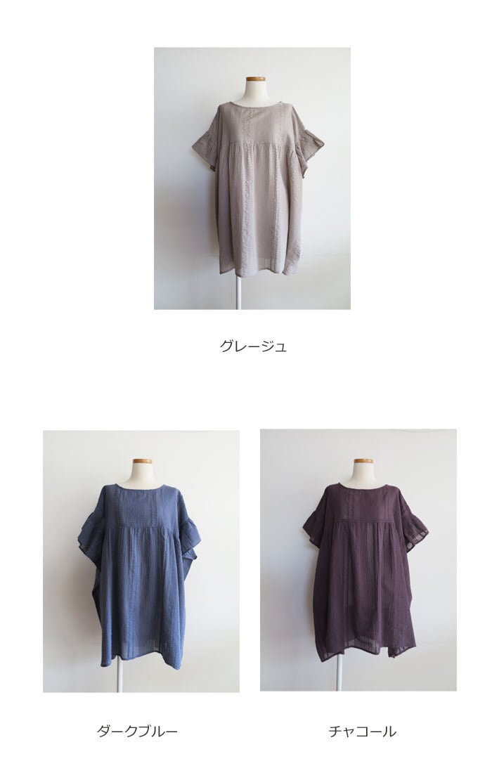 ランダムシアサッカー素材のフレアブラウスチュニック。