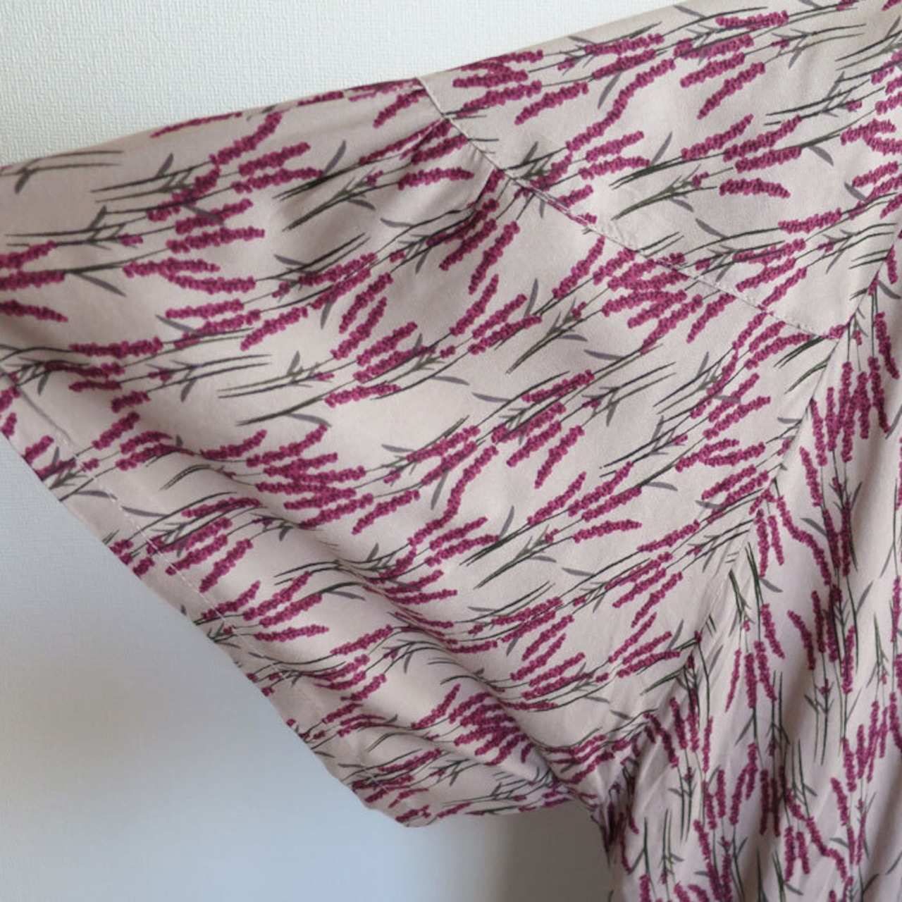 袖口に向かってふわりと広がるフレアスリーブが特徴的です。