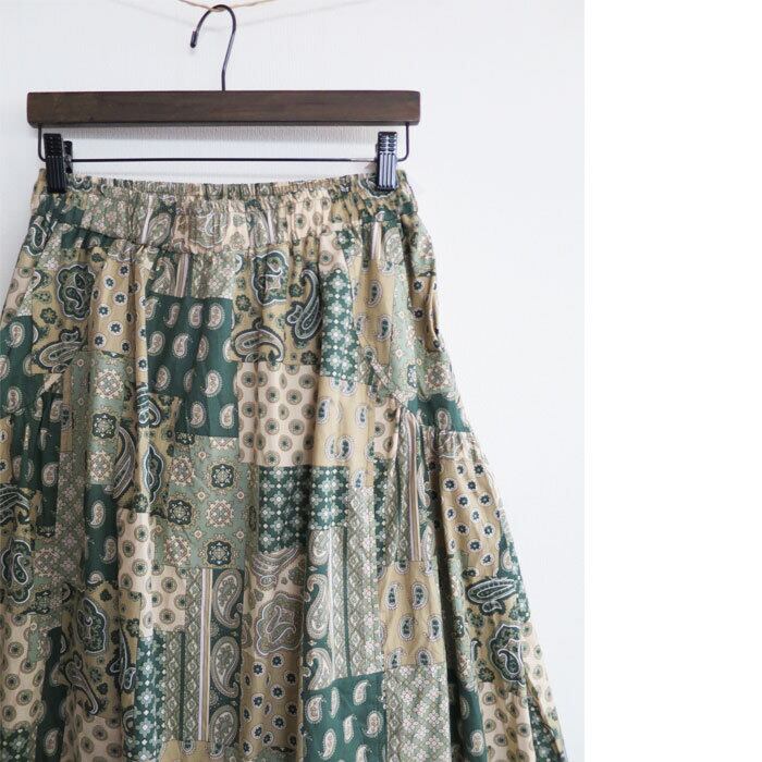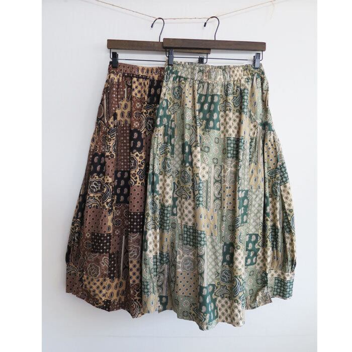 パッチワークペイズリー柄のコクーンスカートです。