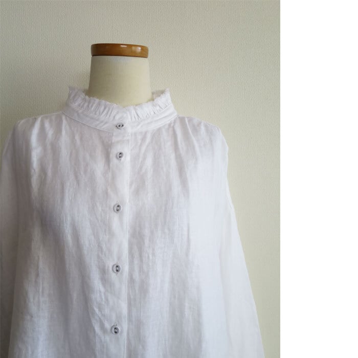 ista-ire イスタイーレの強撚リネンを使用したフリルカラーのブラウスです。