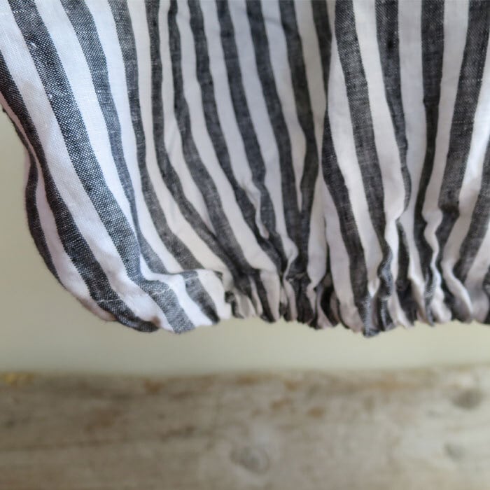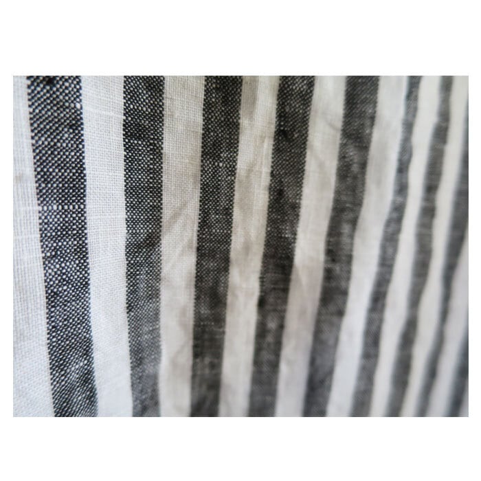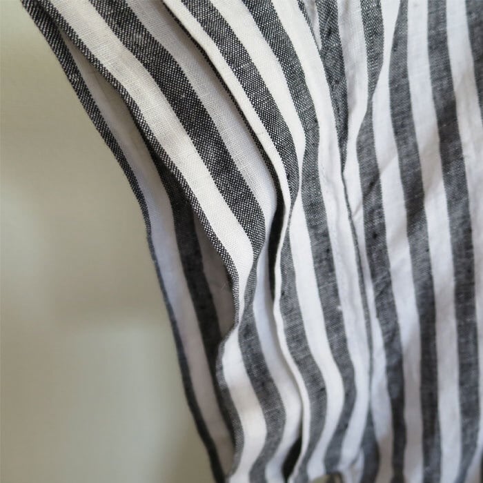 ナチュラルな風合いが魅力的なストライプリネン生地を使用した半袖ワンピース。