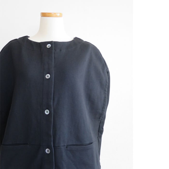 ポンチョ型のデザインにシンプルですっきりとした印象のシームポケットもポイント。