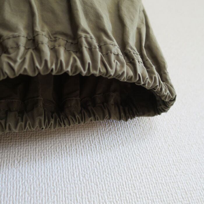 ウエストは太めの平ゴム仕様。内側紐付き。ポケットあり。