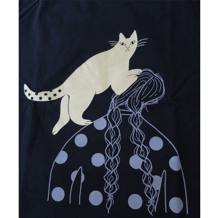 可愛らしい猫のプリントがアクセントとなり、カジュアルなスタイルにぴったりの一着です。