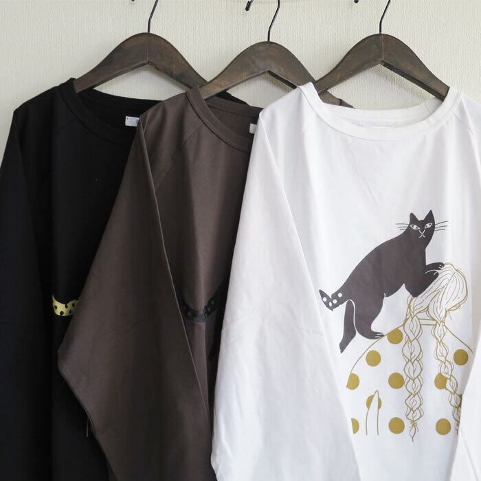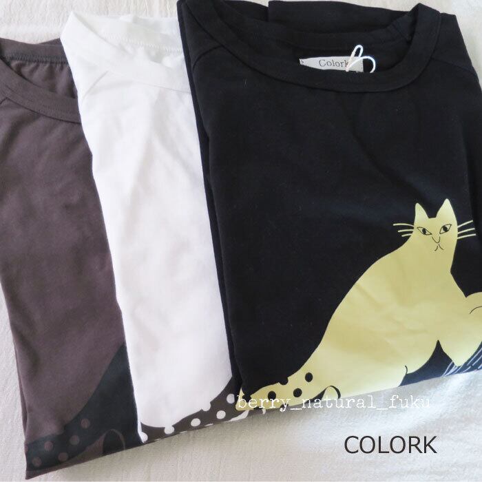 COLORK カラック 肩に乗る猫 長袖 ワイドカットソー ロンT プリントTシャツ ゆったり 綿 コットン 1542473 通販 7932