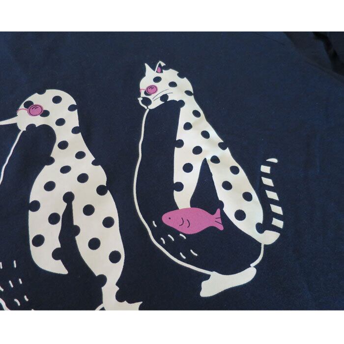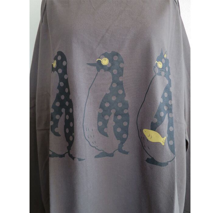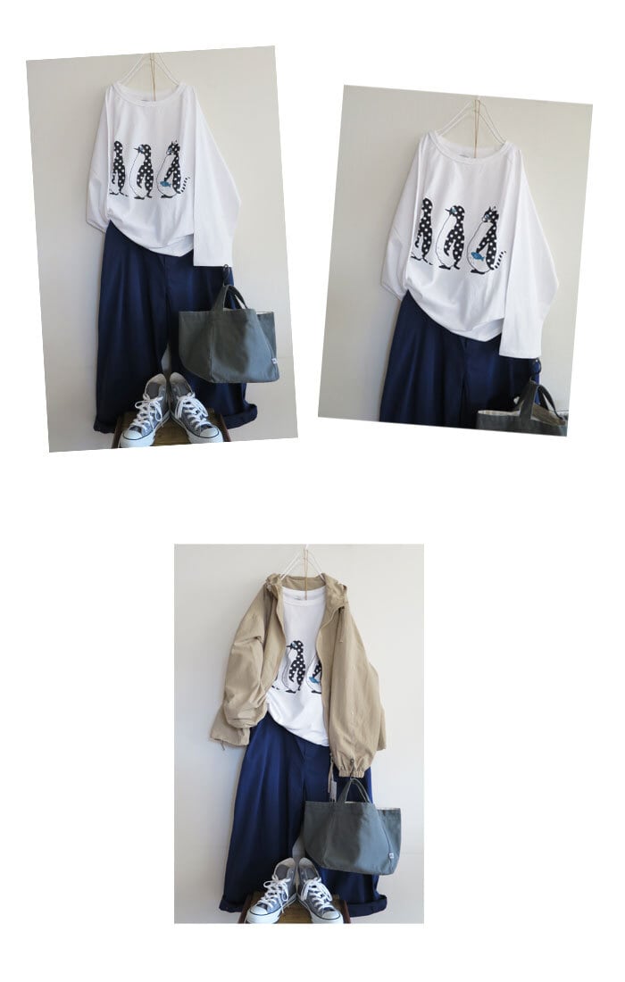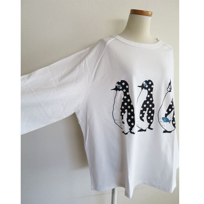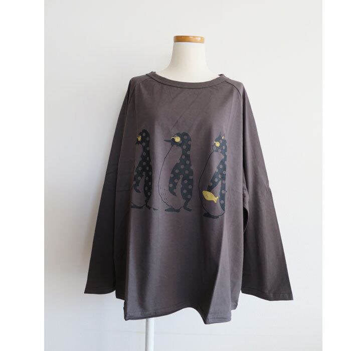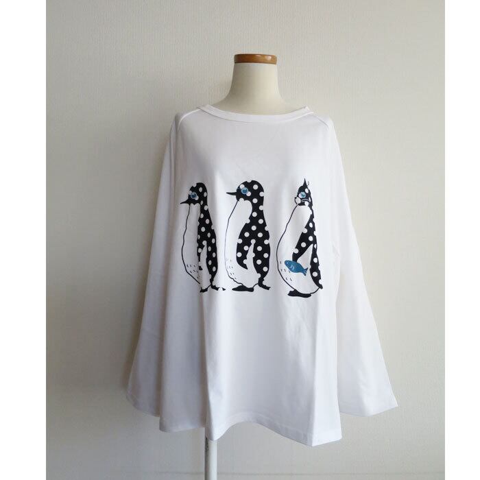 ペンギンと猫の行進プリントがかわいいワイドカットソーです。