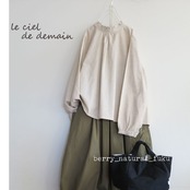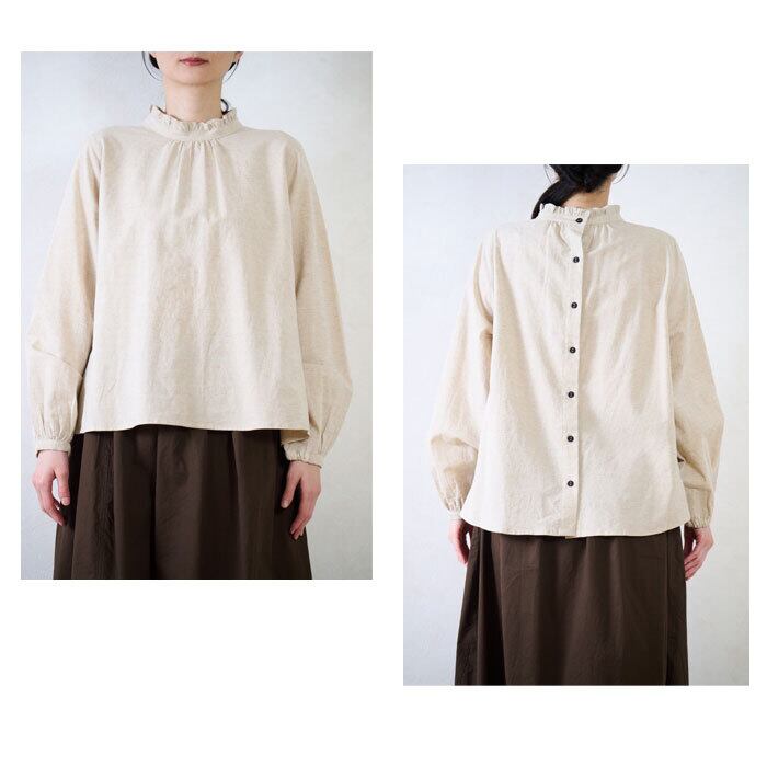 le ciel de demain ルシエル 綿麻 平織ブラウス コットンリネン 衿フリル 後ろボタン シャツ DZ254A-BR03 通販 7949