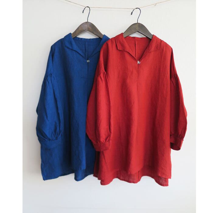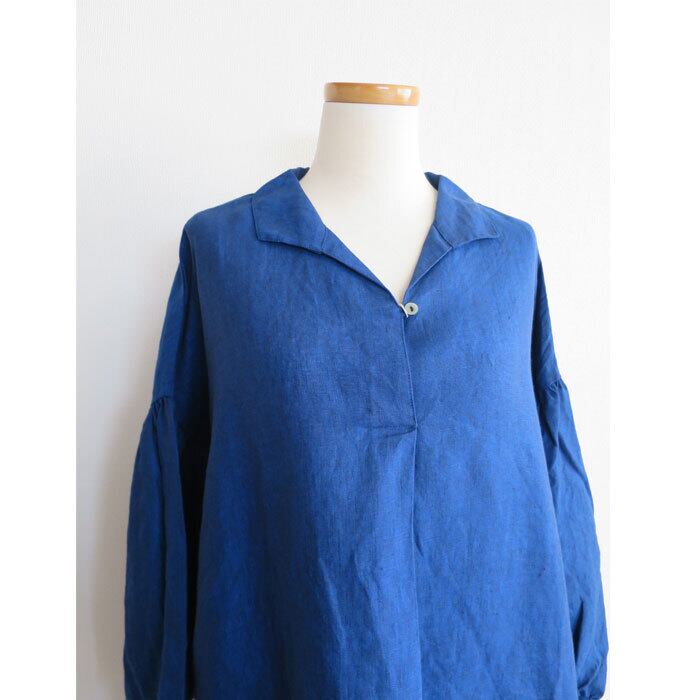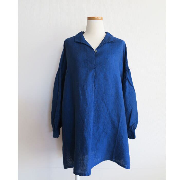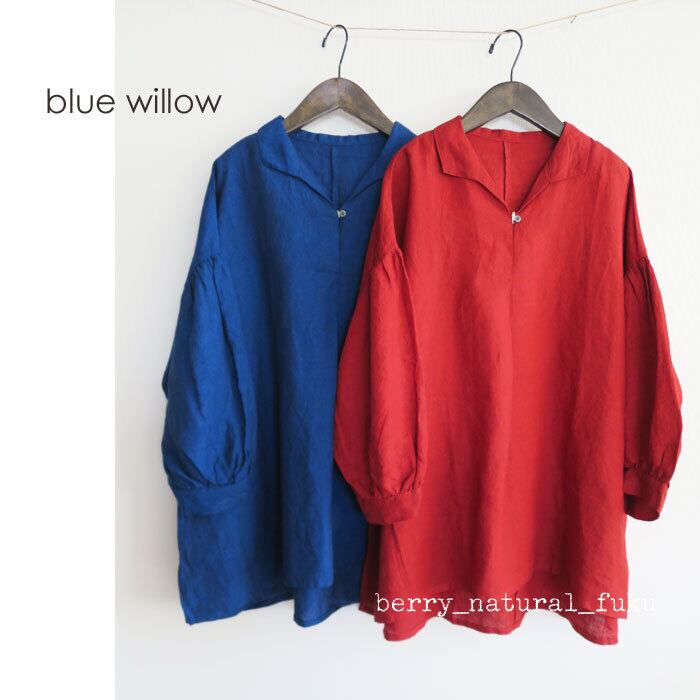 blue willow ブルーウィロー リネン100% 平織無地 オープンカラー チュニック 01EFP12433 通販 7964