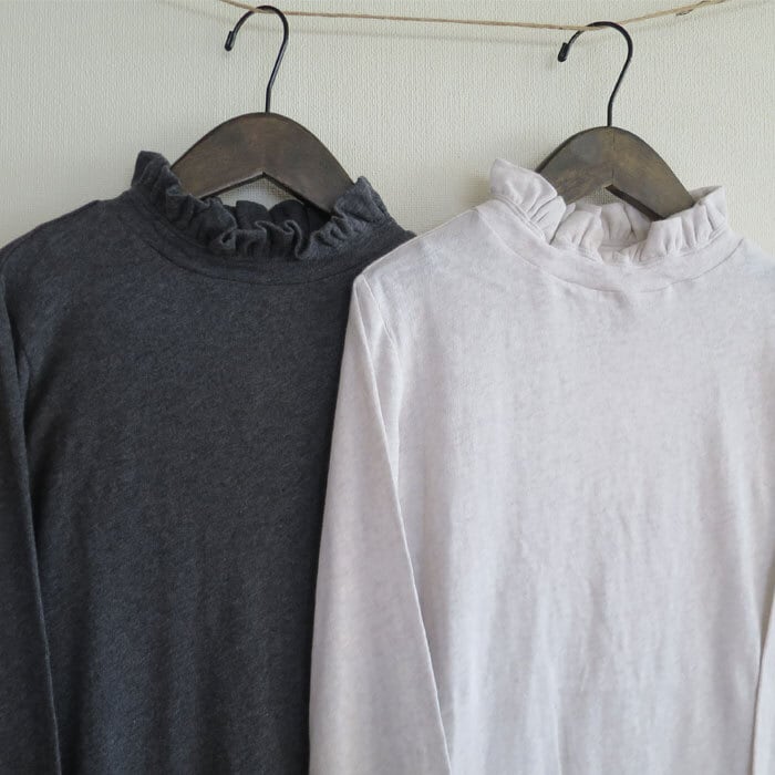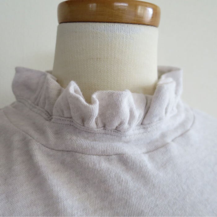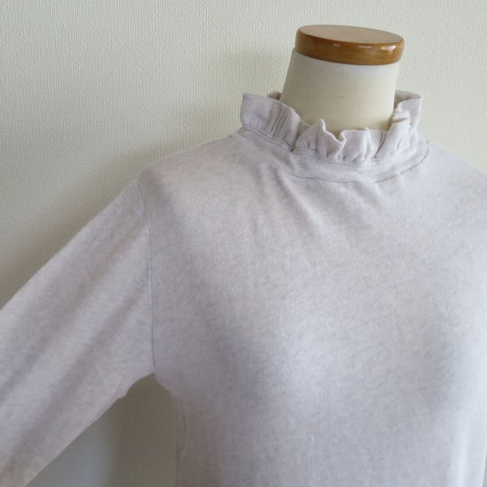 HEAVENLYコットンガーゼ フリルネック カットソーTシャツです。