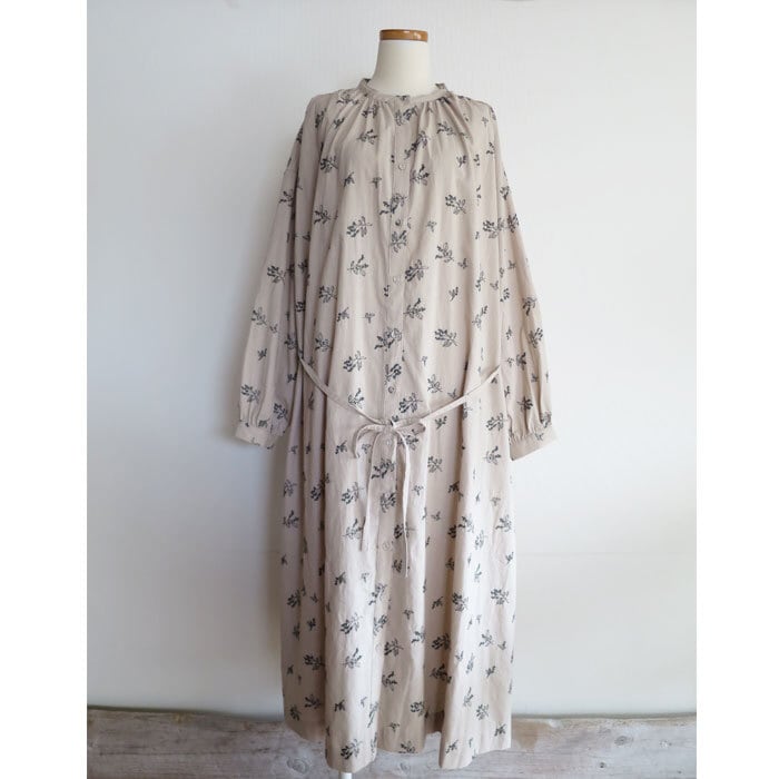 ista-ire オリーブ柄刺繍ネックギャザーワンピースです。