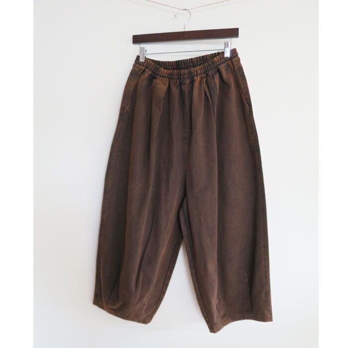 ウエストにはタックが入りゆったりとした胴回りと深めの股上で履き心地よく、裾にはダーツを入れ裾に向かって丸みのあるコクーンシルエットになっています。