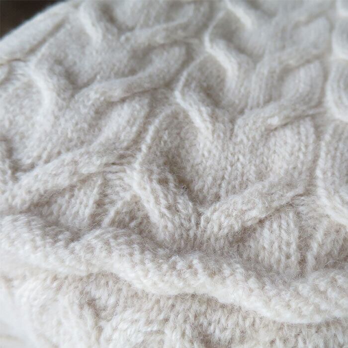 高品質なウールを使用した贅沢な一枚で、アラン柄の立体感が魅力です。