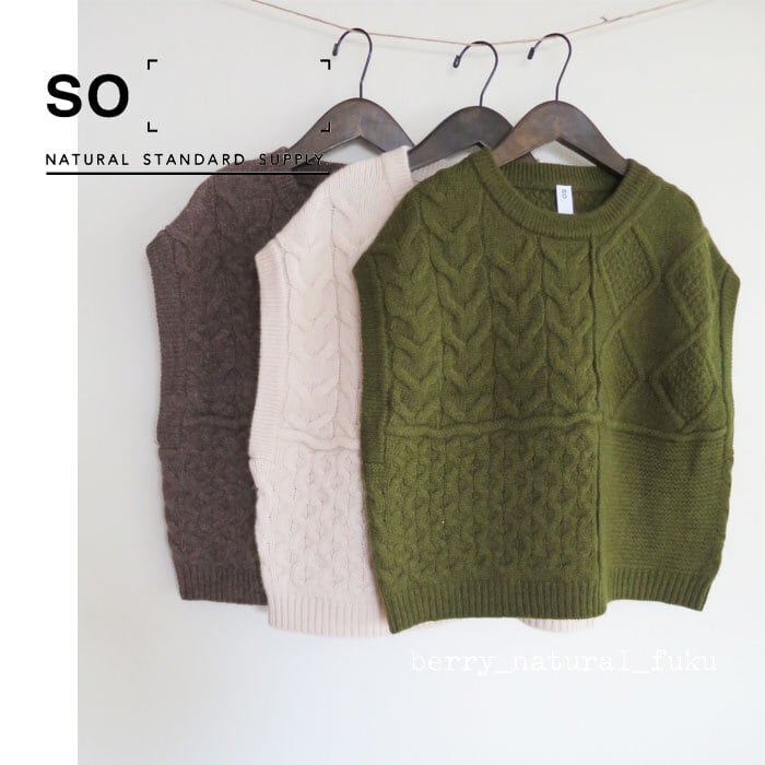 SO エスオー ウール100% アラン柄 パネルベスト 毛 ニットベスト SB-1881 通販 7982