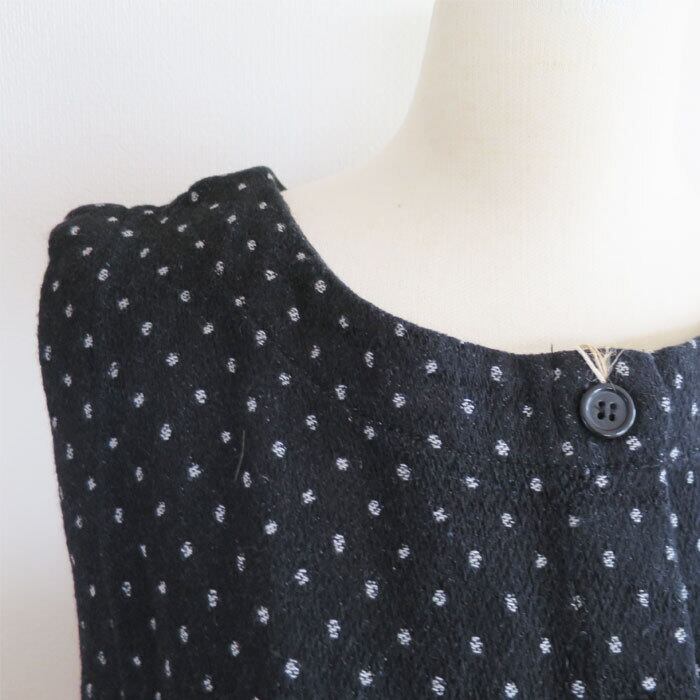 可愛らしい水玉模様とジャガード素材が印象的な一枚で、前後どちらでも着用可能なデザインが特徴です。
