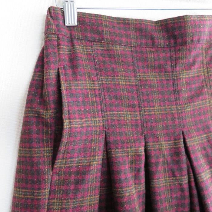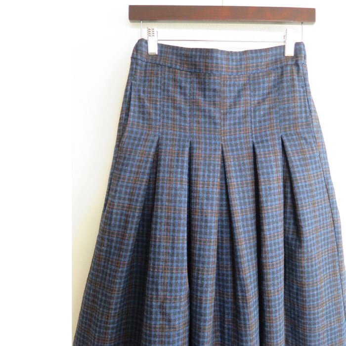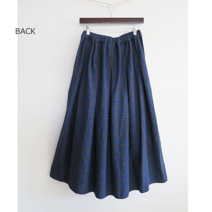しなやかで暖かみのあるウール混素材を使用した、チェック柄のタックスカートです。