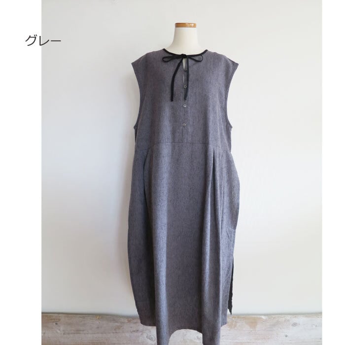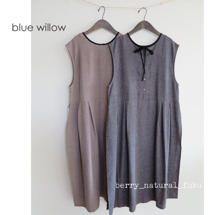 blue willow コットンリネン 平織 起毛 サイドスリット 2WAY ワンピースです。
