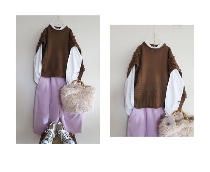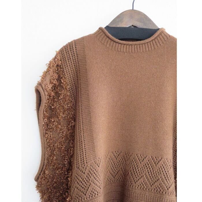 tumugu ツムグ ウール アンゴラ×フリンジ ベスト ニットベスト ワイド TK25305 通販 7988