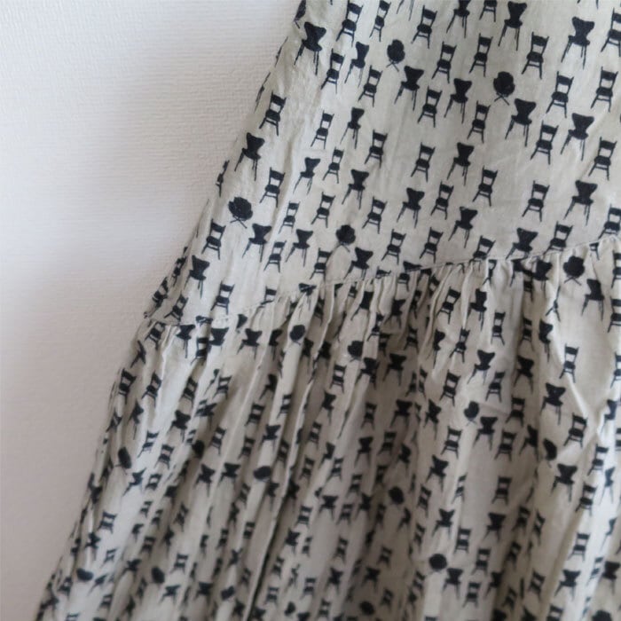 fu-dueka 椅子柄ティアードギャザースカートです。