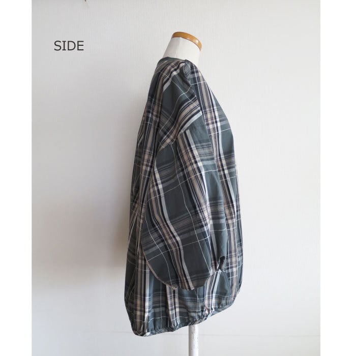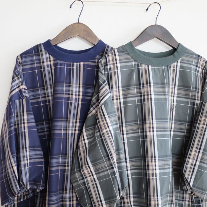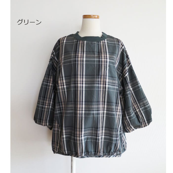 sloe スロウ 先染めチェック 衿リブ 7分袖 バルーンスリーブ プルオーバー ブラウス 綿 4406011 通販 8029