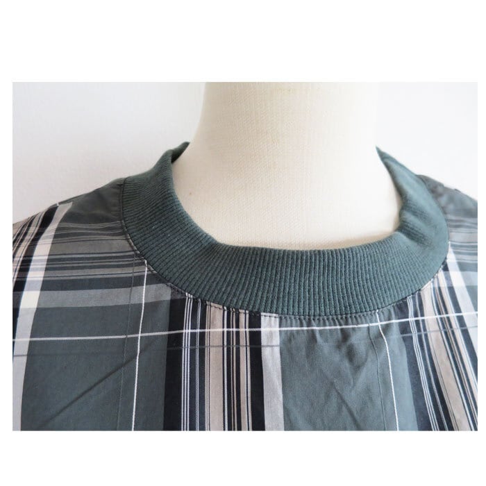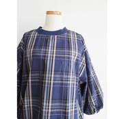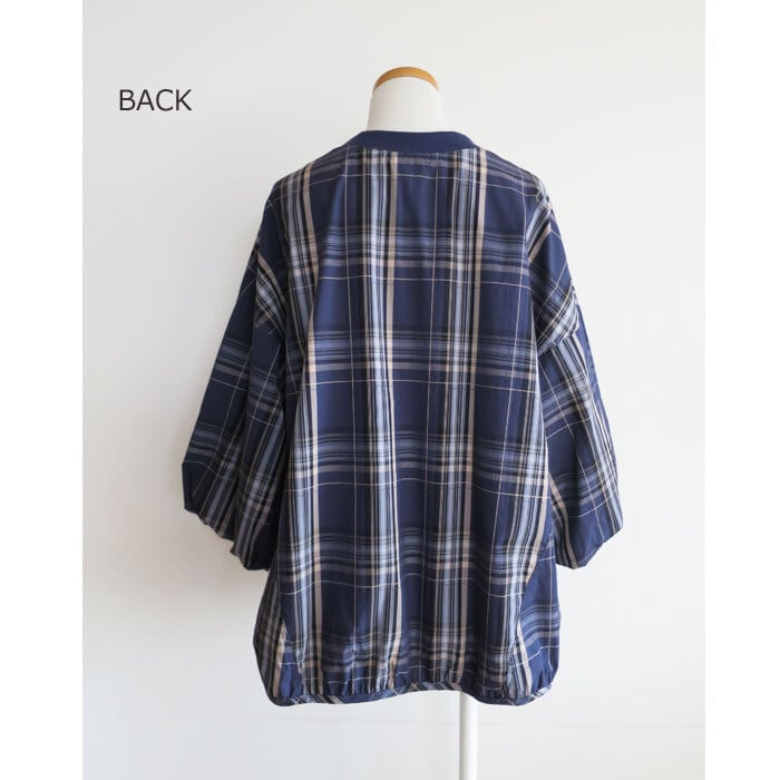 sloe 先染めチェック衿リブ7分袖バルーンスリーブプルオーバーブラウスです。