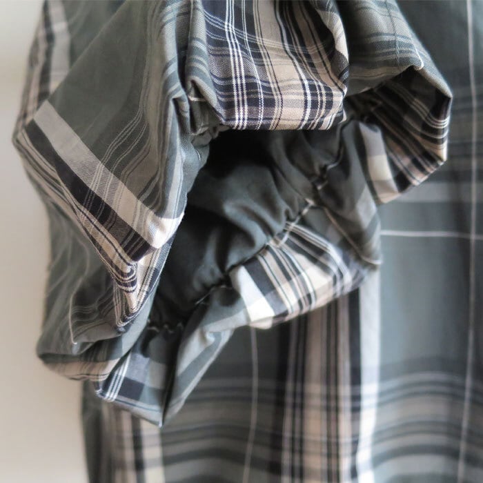 袖のみ裏地付きのバルーンシルエット。袖口にはゴムを使用しています。