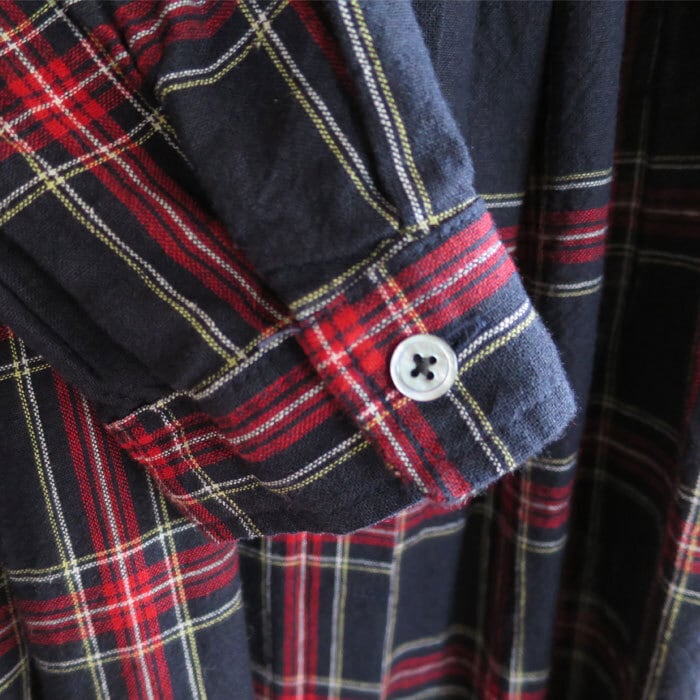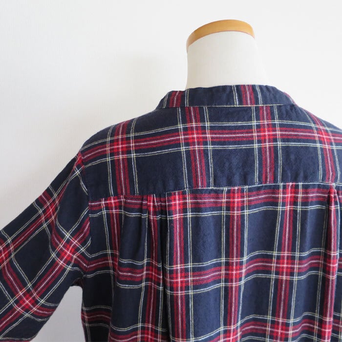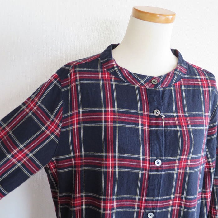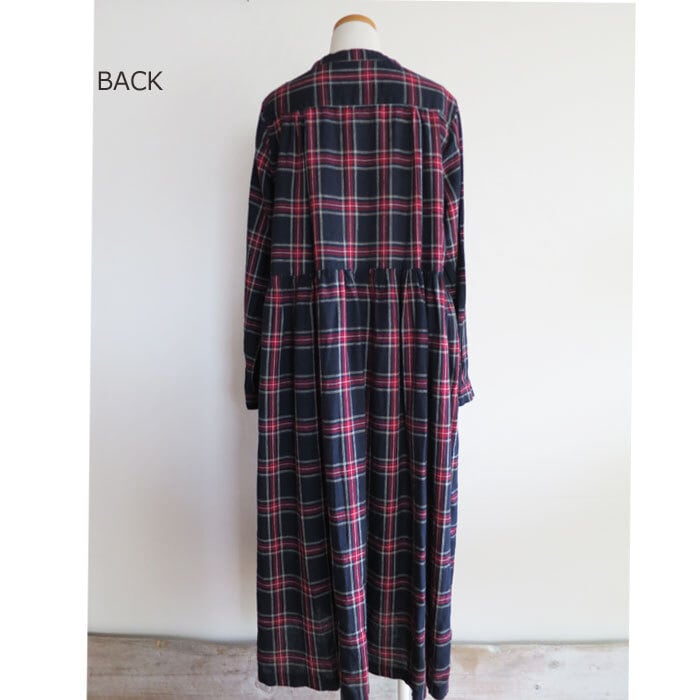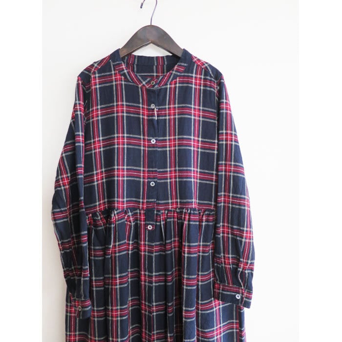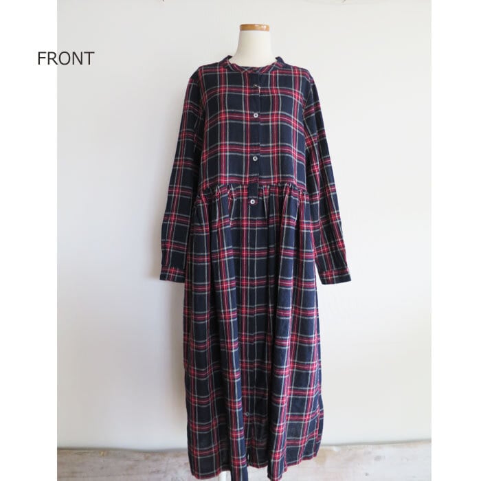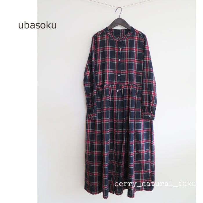 ubasoku ウバソク リネン先染め タータンチェック ワンピース バンドカラー ウエストギャザー 前開き 長袖 ub21-0379 通販 8060