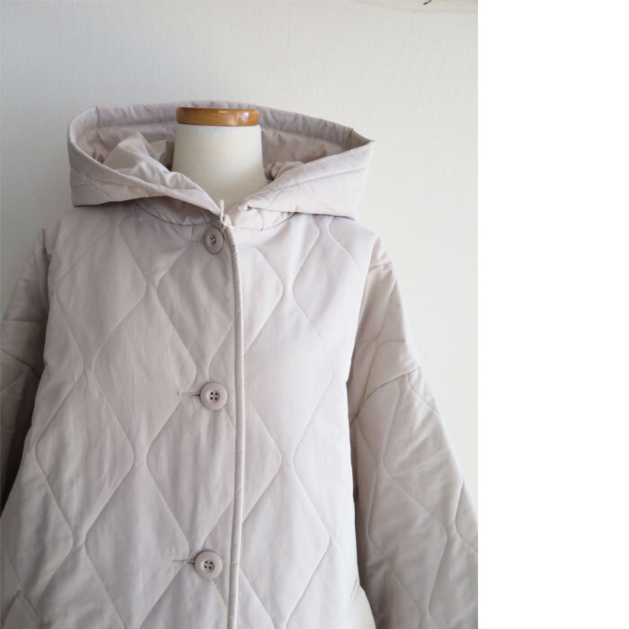 ista-ire 中綿キルティングフードコートです。