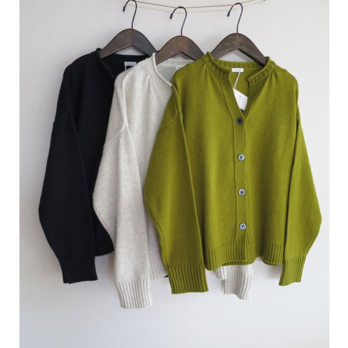Bliss bunch ラムウール混スキッパーニットワイドカーディガンです。