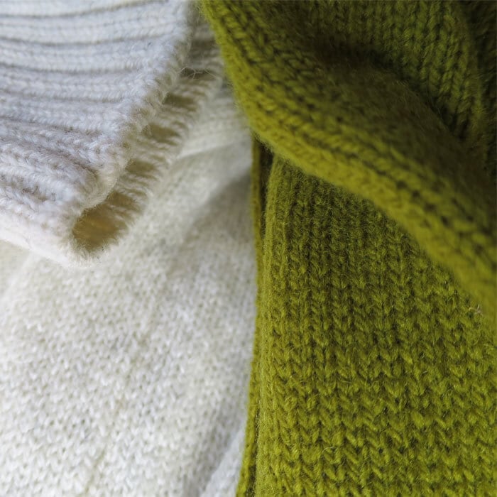 柔らかなラムウールが混合された素材で、心地よい肌ざわりが特徴です。
