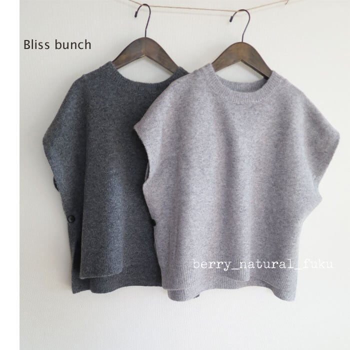 Bliss bunch ブリスバンチ ウール混 ショート丈 サイド釦 ワイド ニットベスト 758-253 通販 8082