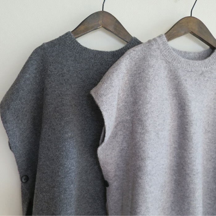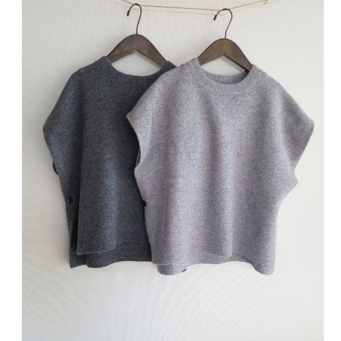 Bliss bunch ウール混ショート丈サイド釦ワイドニットベストです。