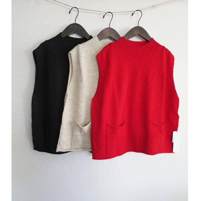 SO エスオー ウール リネン ポケット付き ニット ベスト 毛混 ハイネック 日本製 SJ-0076 通販 8103