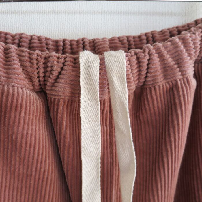 肌触りの良い綿コーデュロイを使用しており、しっかりとした生地感でありながら、どこかリラックスした印象を与えるデザインが特徴です。