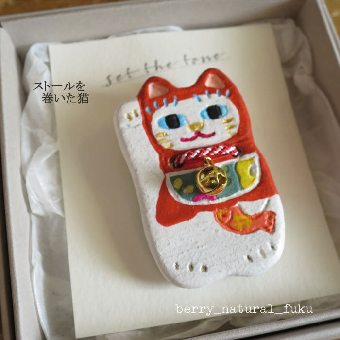 set the tone 陶土ブローチ 鯛を持った招き猫シリーズ ストール巻いた猫 ハンドメイド 日本製 to-407 通販 143
