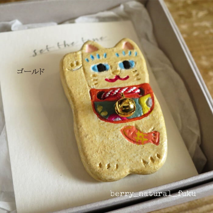 set the tone 陶土ブローチ 鯛を持った招き猫シリーズ ゴールド ハンドメイド 日本製 to-402 通販 144 ネコポス便発送可