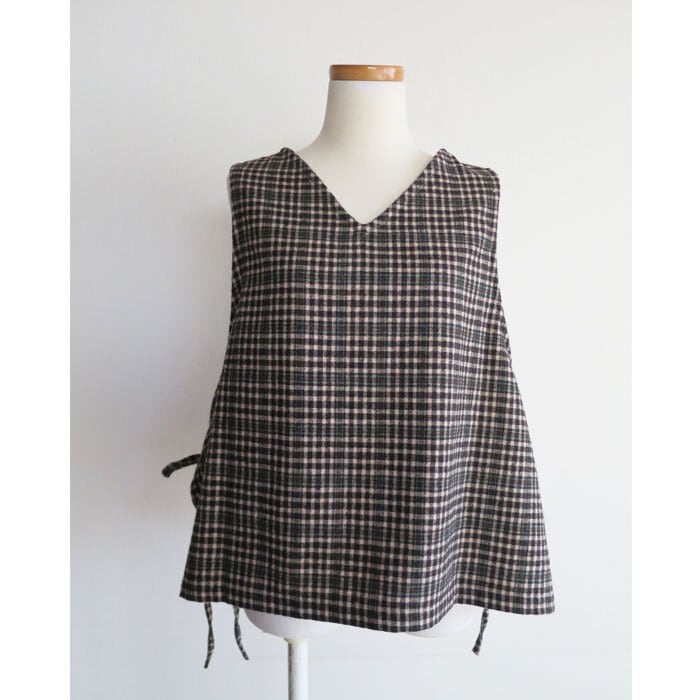 ista-ire ウール混チェック 2WAY サイドリボンベストです。