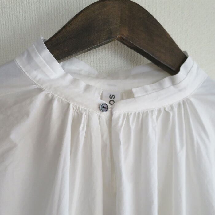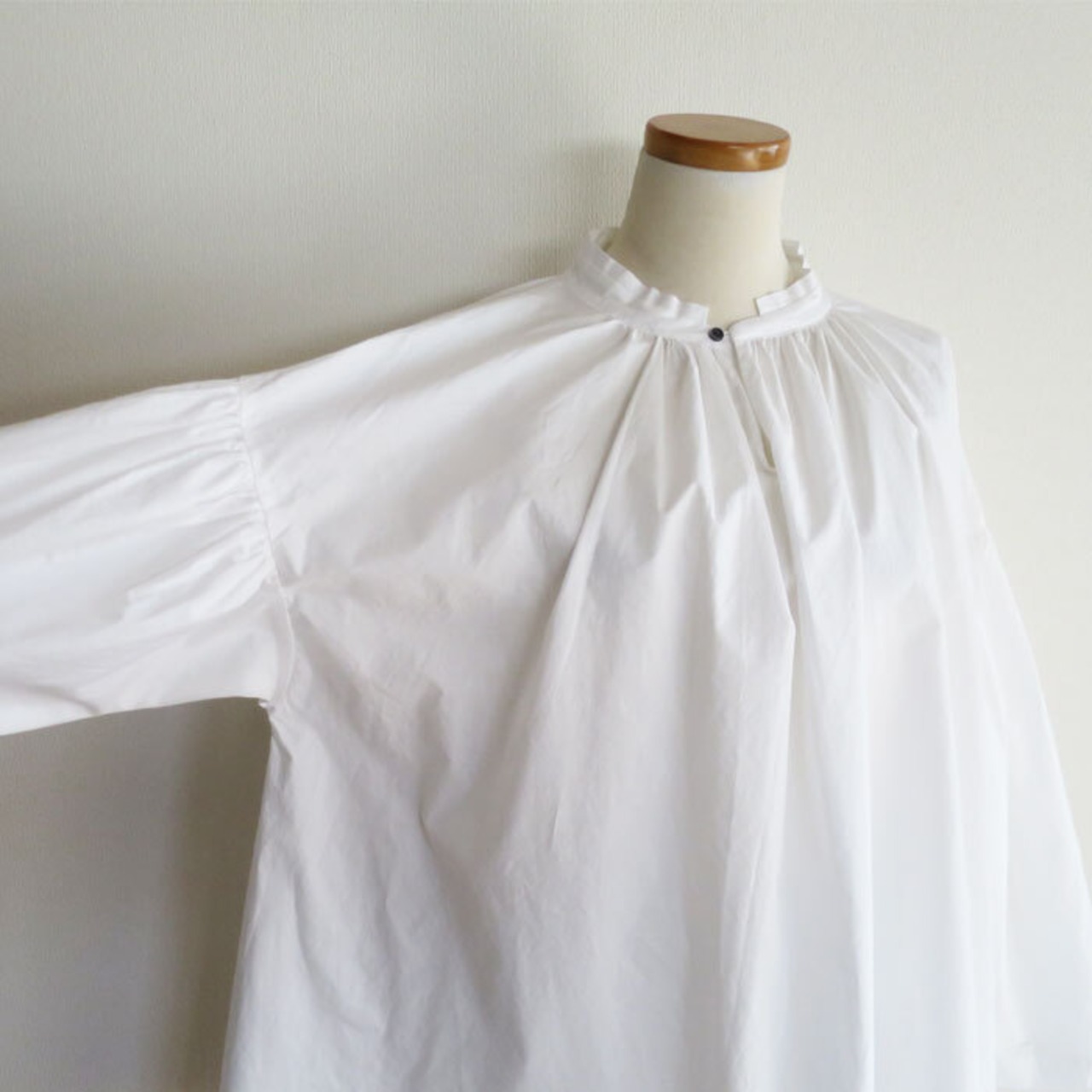 細かなギャザーと立体的なシルエットを出した袖がポイントのブラウスです。