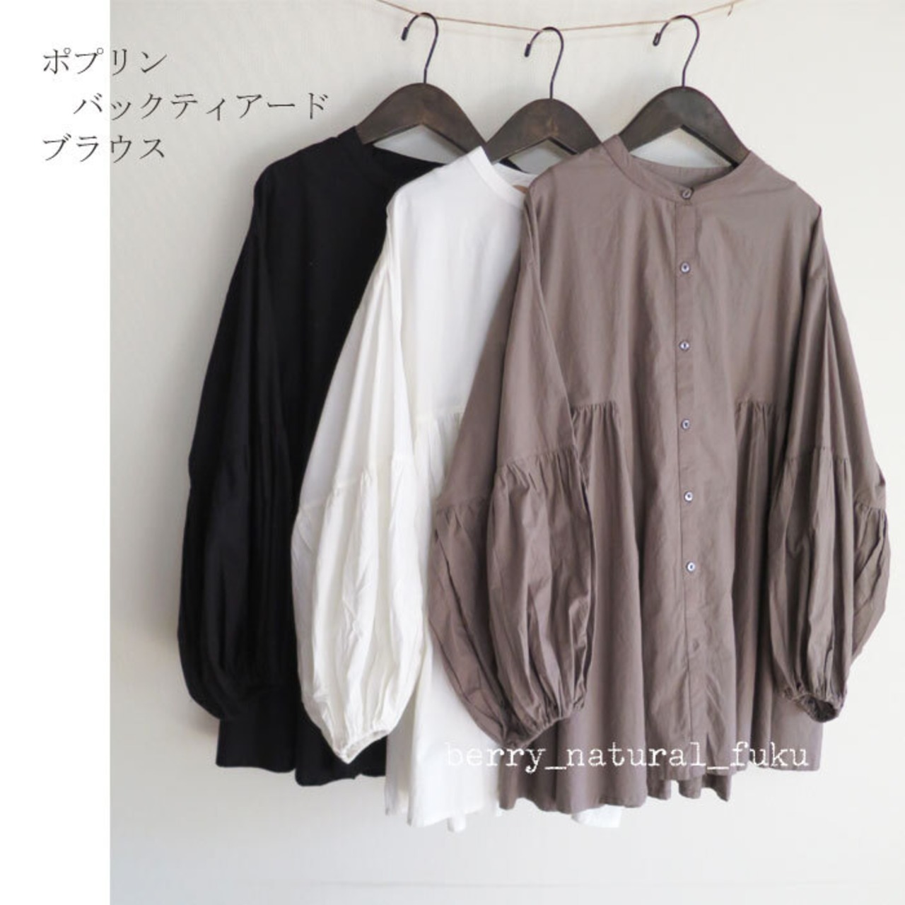 ポプリン バックティアード ブラウス チュニック 綿 ボリューム袖 プチプラ 1204 通販 8011