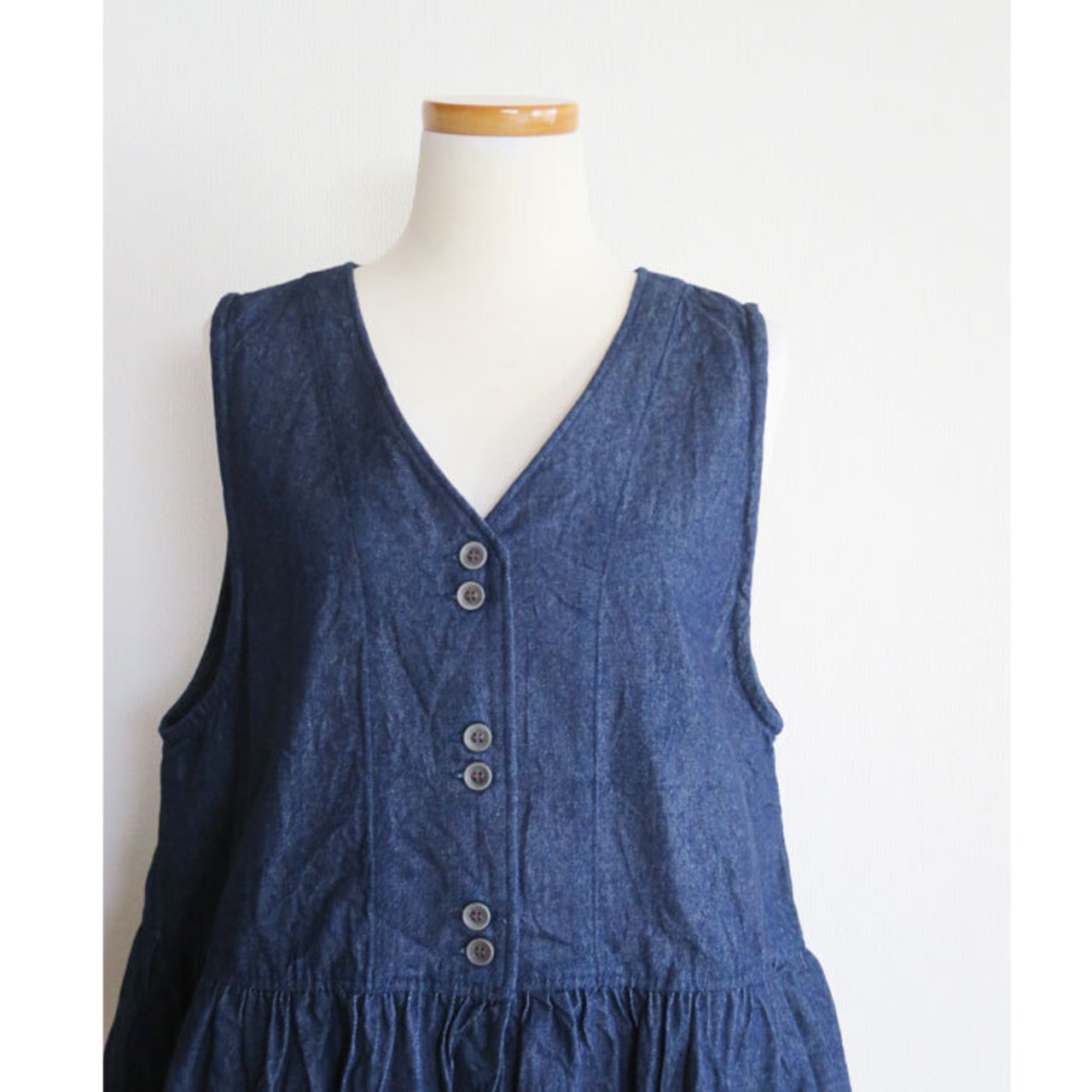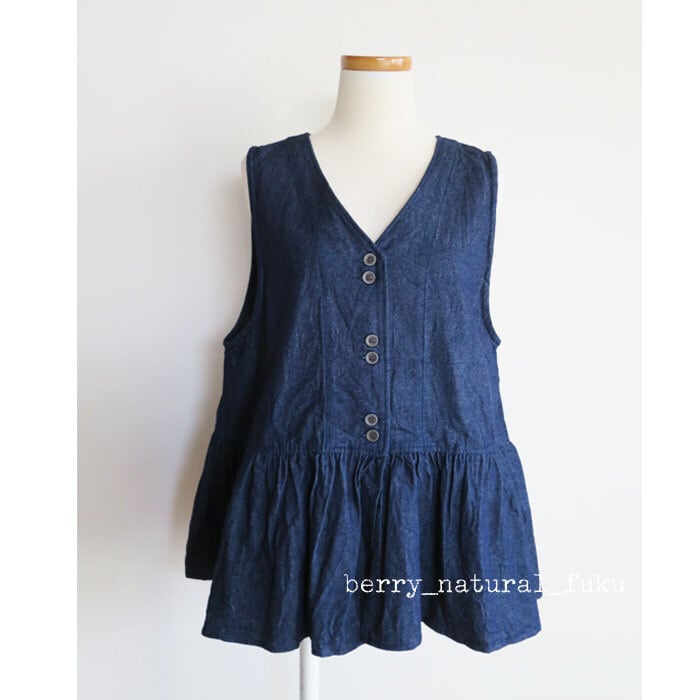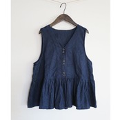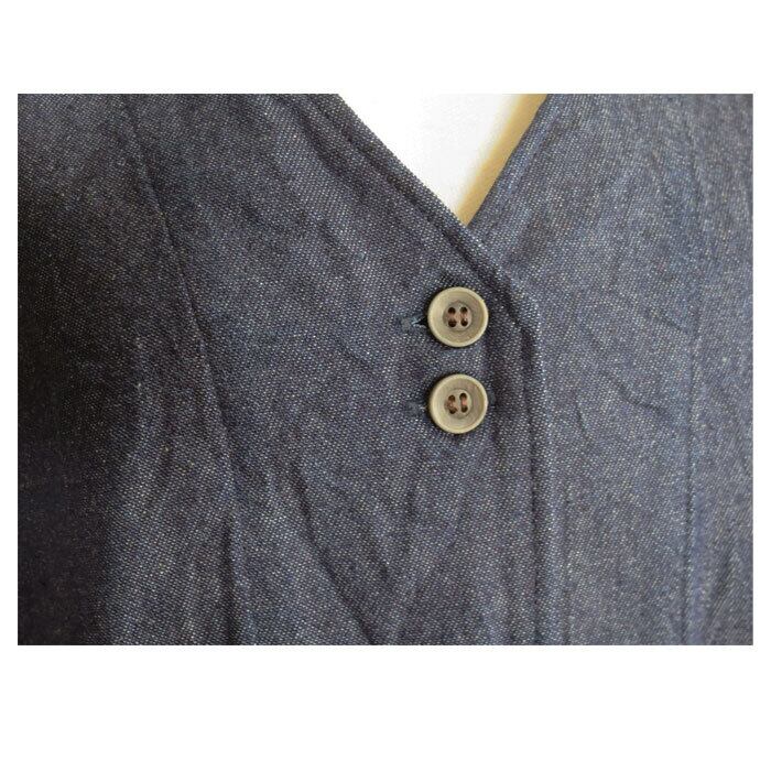 ina イナ デニム 切替フリル ベスト 前開き V衿 インディゴ コットン 日本製 8148 通販 8148