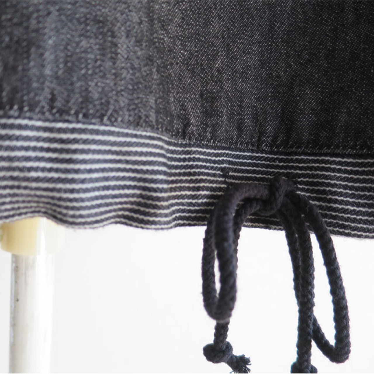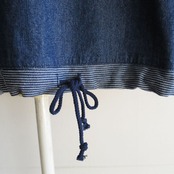裾ドロスト仕様のデザインが特徴で、シルエットに変化をつけることができるので、体型に合わせた着こなしが可能です。 ポケットと裾部分にストライプ別布を施してカジュアルな雰囲気に。