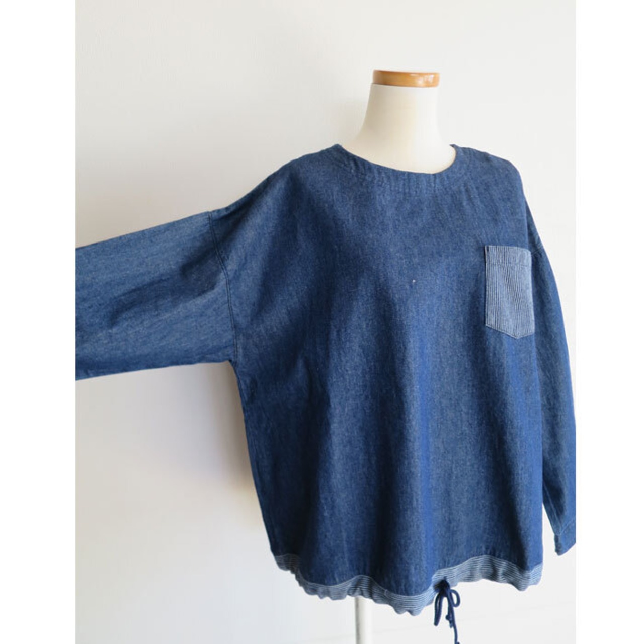 cloudnine クラウドナイン ダンガリー 配色 プルオーバー ドロスト ブラウスPO デニム プチプラ 1971 通販 8151