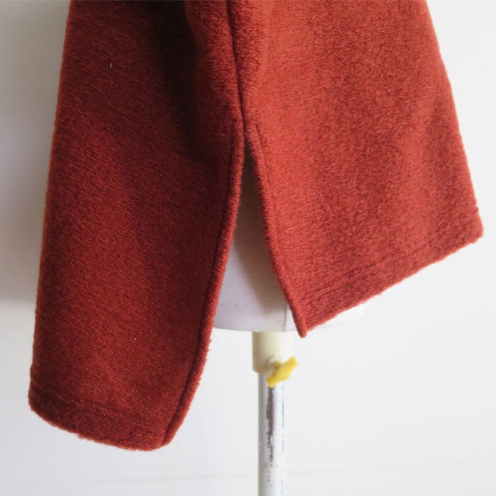 ゆったりとした肩回りが着やすく、前後差をつけた着丈と深く入れた脇スリットがポイントに。