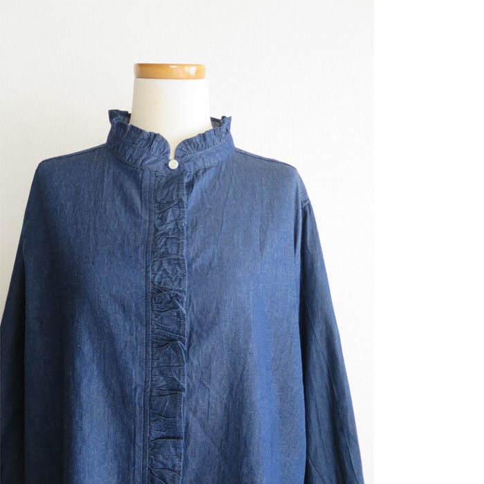 SO エスオー 4.5オンス ライトデニム フリルブラウスです。
